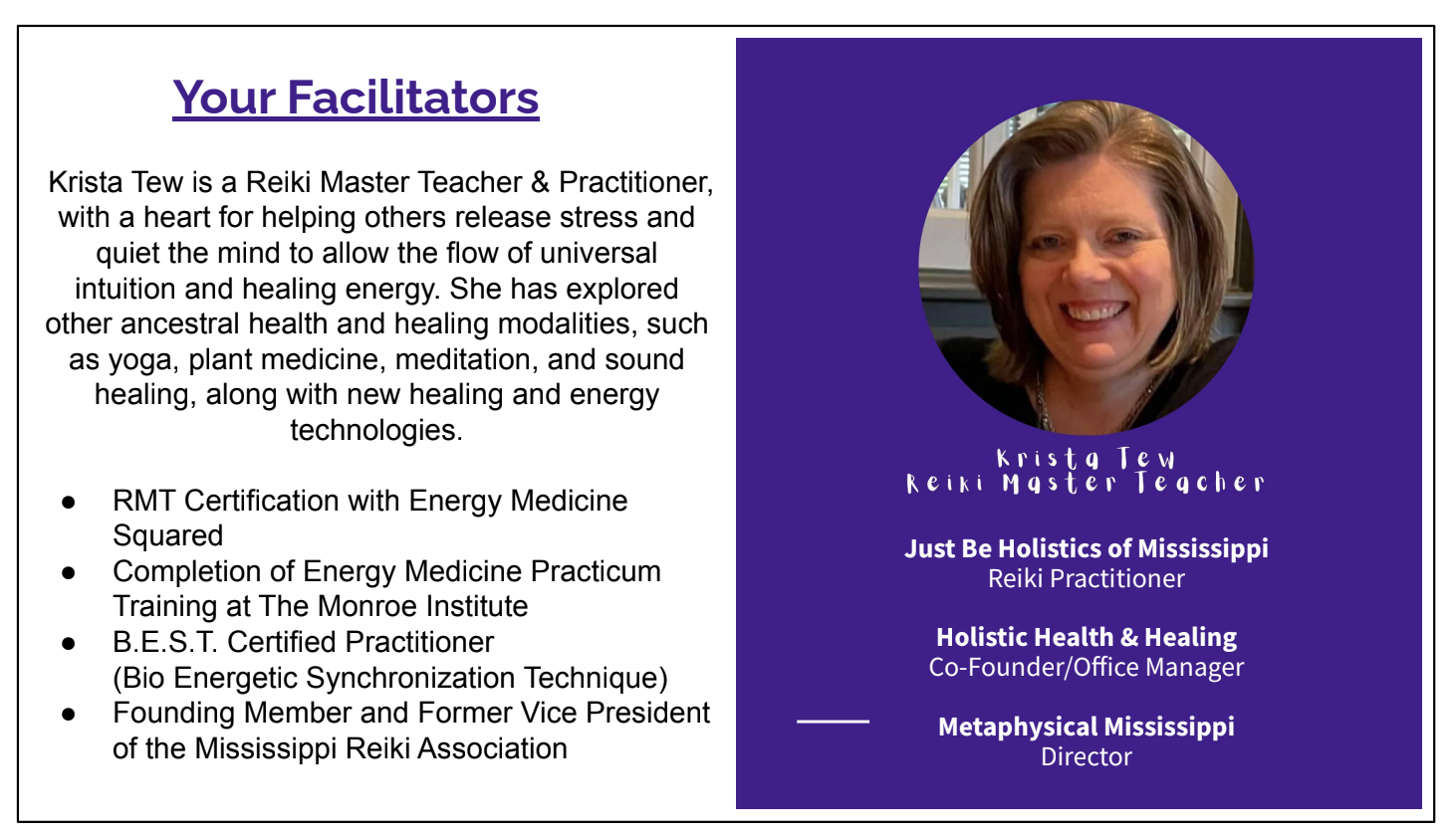 Reiki Master Teachers, Krista Tew & Jina Daniels are co-facilitators of your Reiki 4 Life courses. Having two Reiki master teacher brings more experience & perspectives and provides greater flexibility for students.